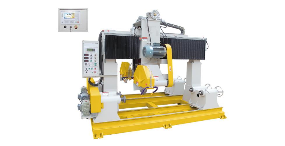 本機(jī)操作簡單,采用框架式整體設(shè)計(jì),微電腦控制,光學(xué)測量控制;可切割任意形狀的圓形欄桿、圓球、柱座、柱帽等旋轉(zhuǎn)體型石材;本機(jī)的設(shè)計(jì)改進(jìn)了其他機(jī)器手工加工不均勻、消耗大、精度低的缺點(diǎn),并具有自動(dòng)控制的優(yōu)點(diǎn),每個(gè)尺寸調(diào)整后,型材從1個(gè)同時(shí)增加到8個(gè),節(jié)省人力,提高生產(chǎn)效率。